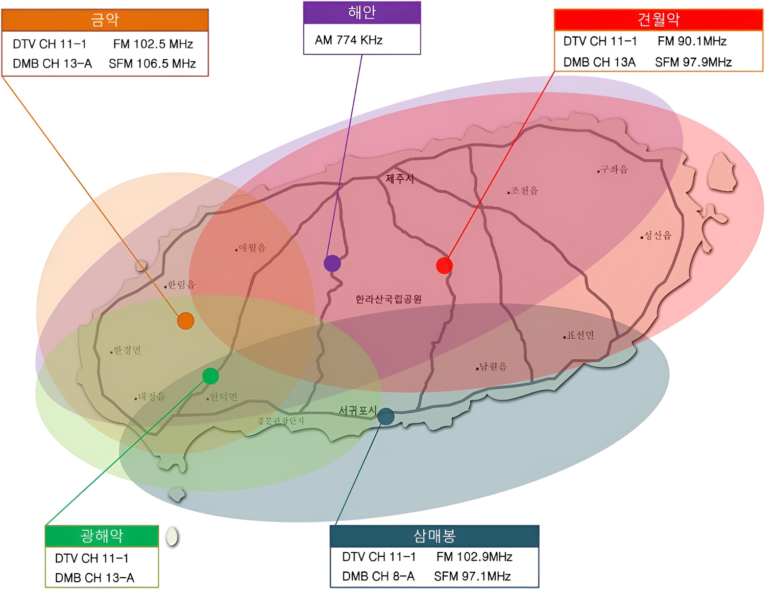 | 광해악 중계소 | (안덕면, 대정읍, 한경면) | DTV | CH 11-1 |