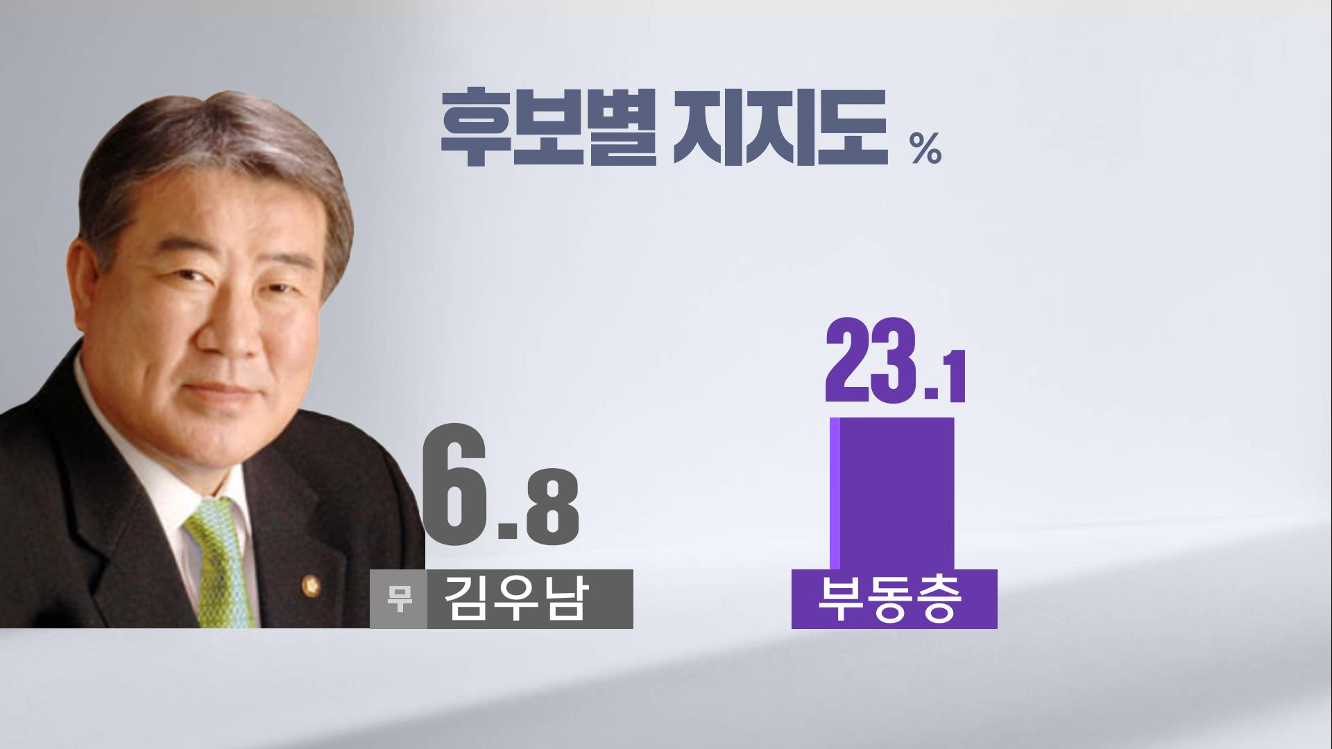 무소속 김우남 후보는 6.8%를 얻었고, 부동층은 23.1%로 나타났다.