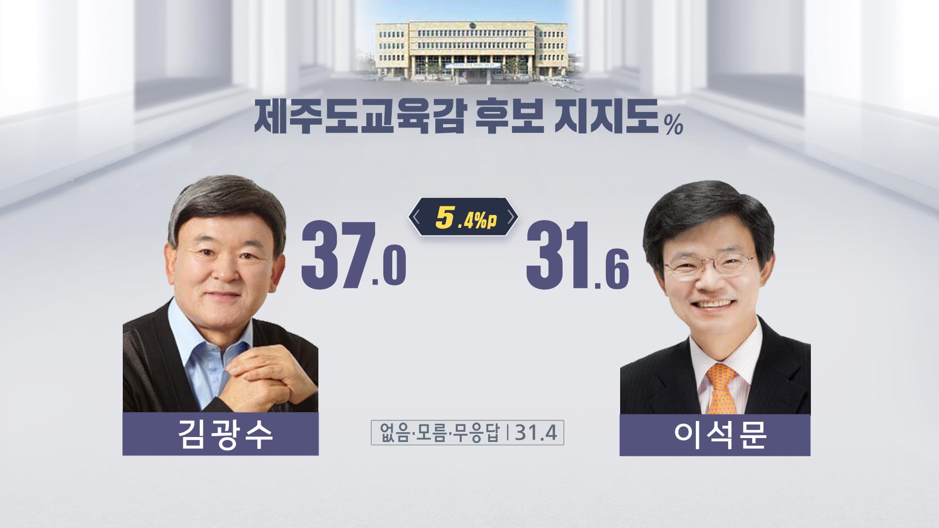 지난 3차 조사때는 이석문 후보가 32.7%로 28.9%를 얻은 김광수 후보를 오차 범위 안에서 앞섰지만,