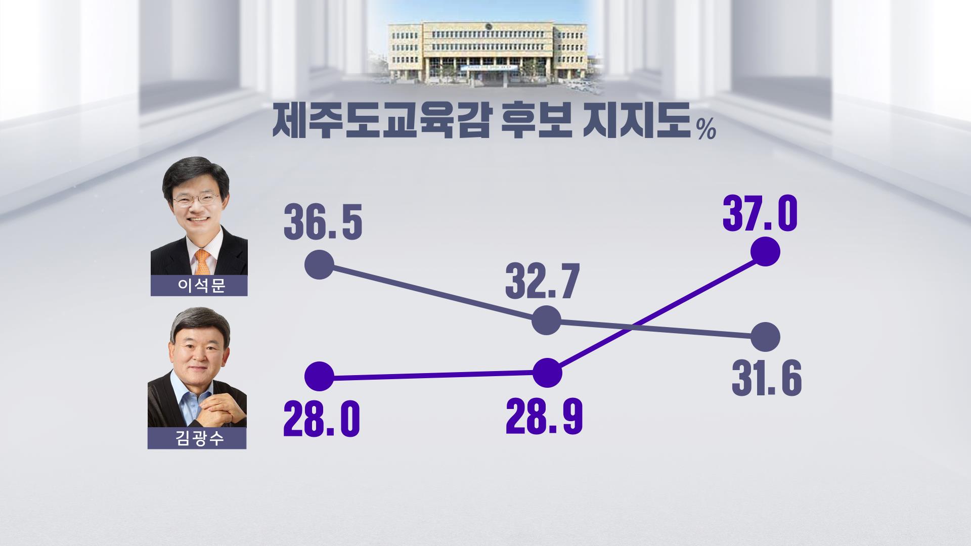 교육감 후보 지지도에서도 오차범위 안 역전이 이뤄졌다.