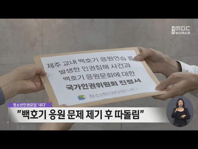 뉴스데스크 뉴스데스크뉴스투데이기획뉴스유튜브 뉴스페이스북 뉴스 prev 2024.4.24 - 수요일 next 70대 고독사‥기초수급자 관리체계 정비 제주의 한 폐업 모텔에서 발견된70대 고독사 사건과 관련해 보건복지부가 기초생활수급자의 관리체계를 정비하기로 했습니다. 보건복지부는지자체와 협력해 1인 가구 등고위험 가구 관리를 강화하고,실제 ... 홍수현 황금연휴 외국인 10만 명 제주 방문 일본 골든위크와 중국 노동절 연휴가맞물린 가운데, 모레(27일)부터 다음 달 10일까지10만 명의 외국인이 제주를 찾을 것으로 보입니다.연휴 기간 제주와 중국 대도시 직항 노선은주 126회 운항하고대형 ... 이소현 제주-도쿄 직항 오는 7월 재개‥3년 4개월 만 제주와 일본 도쿄를 잇는 하늘길이 3년 4개월 만에 재개될 것으로 보입니다. 관광업계에 따르면 대한항공은오는 7월 3일부터 제주와 일본 도쿄 나리타 공항을 오가는 직항노선을 주 3회 운항할 예정입니다... 김찬년 도내 55개 관광 주체 협력‥관광 상품 개발 제주의 지역 관광 주체들이협업을 통해 관광상품 개발에 나섰습니다.제주도와 제주관광공사는제주웰컴센터에서 스타트업과 마을공동체, 웰니스 관광지 등도내 55개 민간 주체가 모여관광 산업 육성과 실행... 이소현 청소년인권단체 "백호기 응원 문제 제기 후 따돌림" 백호기 응원 문화에 대해청소년 인권 단체가 인권 침해를지적하고 나섰습니다. 청소년인권모임 '내다'는 보도자료를 내고, 서귀포의 한 고등학교에서인권침해 문제를 제기한 학생이 자퇴했다며, 학교 안에... 김하은 '어린이 버스 요금 면제 조례' 상임위 통과 13살 미만 어린이에게 버스 요금을 면제해주는 공영버스 조례 개정안이 도의회 상임위를 통과했습니다. 더불어민주당 김기환 도의원은 어릴때부터 버스 이용에 대한 친밀도를 높여 대중교통 이용을 활성화... 조인호 중학교 불법촬영 사건‥"추가 피해자 있어" 제주의 한 중학교 화장실에서 발생한 불법 촬영 사건과 관련해추가 피해자가 더 있는 것으로 드러났습니다. 제주경찰청이불법 촬영을 한 중학교 2학년 남학생의휴대전화를 디지털 포렌식 한 결과추가 피해... 김하은 동부하수처리장 증설공사 또 중단 ◀ 리포트 ▶지역 주민들의 반발에 막혀6년 만에 공사를 재개한제주동부하수처리장 증설 공사가 또다시 중단됐습니다. 법원이 증설 공사 고시가 무효라는 1심 판결을 내린데 이어 일부 주민들이 제기한 집행... 박주연 '선거법 위반' 오영훈 지사, 항소심도 벌금 90만 원 ◀ 앵 커 ▶공직선거법 위반 등의 혐의로 재판에 넘겨진오영훈 제주도지사가 2심에서도 당선 무효형을 피했습니다.항소심 재판부는 상장기업 20개 만들기 협약식 개최에 관여한사단법인 대표 등 2명에 대해... 홍수현 공사 시작됐는데‥"주민 동의도 없었다" ◀ 앵 커 ▶제주의 한 마을에양식장 배출수를 이용해 전기를 만드는소수력 발전 시설 공사가 시작됐는데요.그런데 어찌 된 일인지 주민들은 마을 동의 없이 공사가 시작됐다며 문제를 제기하고 나섰습니다. ... 김하은
