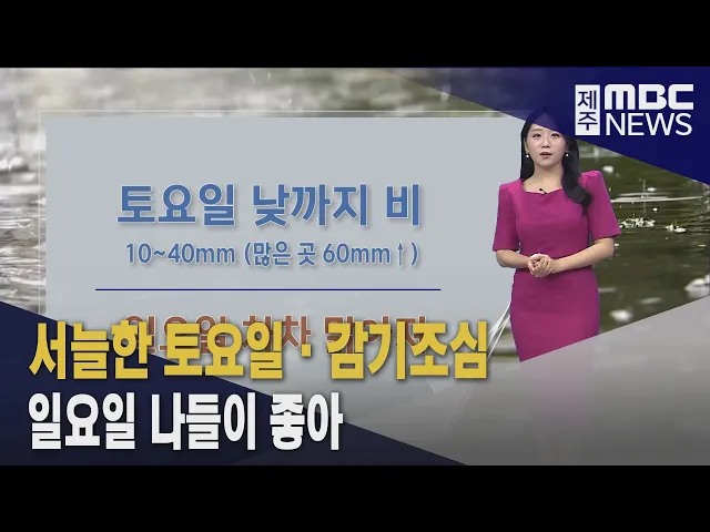 뉴스데스크 뉴스데스크뉴스투데이기획뉴스유튜브 뉴스페이스북 뉴스 prev 2025.5.23 - 금요일 next 토요일 낮까지 최대 60mm '비'‥일요일 화창 종일 서늘한 바람이 불고 있습니다.저기압의 영향으로 제주도 곳곳에 비가 내리고 있는데요밤사이 바람도 더 강하게 불겠고내일 낮까지 10~40mm의 비가 내리겠습니다.한라산 남동쪽 지역은 60mm 이상비가 ... 정희원 76년 만에 무죄‥명예회복 ◀ 앵 커 ▶ 제주 4.3 당시 누명을 쓰고 재판을 받았던 90대 할아버지가 76년 만에 무죄를 선고받았습니다. 4.3 희생자로 결정되지 않은 일반재판 수형인이 무죄 판결을 받은 건 이번이 처음입니다. 김항섭 ... 김항섭 추모 분향소 마련‥유족 "민원에 스트레스" ◀ 앵 커 ▶ 제주지역 한 중학교 교내에서 교사가 숨진 사건에 대해 추모 움직임이 이어지고 있습니다. 유족들은 학생 생활지도에서 벌어진 민원 스트레스가 원인이라고 밝혔는데요. MBC는 유족들의 동의... 장우리 21대 대선 제주지역 유권자 수 확정 21대 대선 제주지역 유권자 수가 확정됐습니다. 제주도선거관리위원회에 따르면 선거인명부에 오른 제주지역 유권자는 56만 3천196명으로 지난 20대 대선보다 735명 늘었습니다. 선거인은 선거인명부 ... 김항섭 21대 대선 거소투표용지 발송 제21대 대통령 선거에서 투표소에 갈 수 없는 장애인과 군인 등을 위한 거소투표용지가 발송됐습니다. 제주도선거관리위원회는 지난 6일부터 10일까지 거소투표 신고를 마친 천 63명에게 거소투표용지와 ... 김항섭 한진 지하수 사유화 확대 허용 오영훈 도정 규탄 제주도가 한진그룹의 먹는샘물용 지하수 증산 신청을 조건부 허용한 결정에 대해 시민단체들이 강하게 반발하고 있습니다. 제주시민사회단체연대회의는 성명을 내고 이번 결정으로 그동안 지켜온 제주 ... 송원일 단체관광 지원금 지급 조례개정안 통과 단체관광객에게 지원금을 주는 내용의 조례개정안이 도의회를 통과했습니다. 제주도의회는 오늘 단일 안건을 심의하기 위한 임시회를 열어 제주도가 제출한 관광진흥 조례 일부개정 조례안을 원안 의결... 김항섭