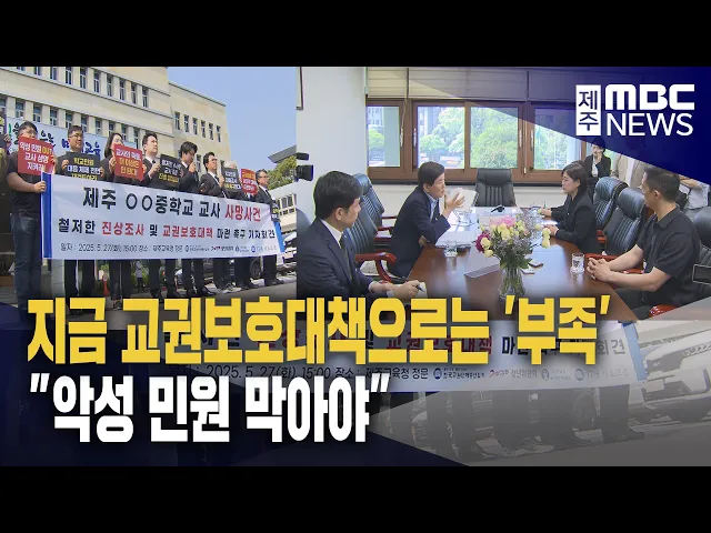 뉴스데스크 뉴스데스크뉴스투데이기획뉴스유튜브 뉴스페이스북 뉴스 prev 2025.5.27 - 화요일 next 선관위, 투표소 배부 투표용지 검수 제21대 대통령 선거를 앞두고 투표용지 검수 작업이 이뤄졌습니다. 제주시 선거관리위원회는 관내 142개 투표소에 배부되는 투표 용지 28만 8천100매의 일련번호와 매수 등을 직접 확인했으며, 이상이 없... 이소현 김문수 국민의힘 대선 후보 다음 달 2일 제주 방문 내일(28일) 제주를 방문하기로 했던 김문수 국민의힘 대선 후보가 일정을 바꿔 선거일 하루 전인 다음 달 2일 제주를 찾습니다. 국민의힘 제주도당에 따르면 김문수 후보는 다음 달 2일 아침 일찍 제주를 ... 송원일 국민의힘 김문수 후보 비판 잇따라 김문수 국민의힘 대선 후보의 제주 방문 일정 변경과 내란 사태 책임에 대한 비판이 잇따랐습니다. 더불어민주당 제주도선거대책위원회는 김문수 후보가 4.3평화공원 참배와 동문로터리 유세 계획을 공개... 박주연 제주 학교에서 학생이 교사 폭행‥경찰 수사 제주도내 학교에서 학생이 교사를 폭행하는 사건이 발생해 경찰이 수사에 나섰습니다. 제주서부경찰서는 도내 한 고등학교에서 학생이 교사를 폭행했다는 신고가 들어와 수사에 착수한 것으로 알려졌습니... 조인호 제20회 평화와 번영을 위한 제주포럼 내일 개막 제20회 평화와 번영을 위한 제주포럼이 내일(28일)부터 사흘 동안 제주국제컨벤션센터에서 열립니다. 이번 포럼은 '평화와 공동 번영을 위한 혁신'이라는 대주제로 전 세계 30여 개국에서 4천여 명의 인사... 박주연 스포츠 역베팅 투자 사기 피해 120억 원 제주MBC가 보도한 스포츠 역베팅 투자 사기 사건의 피해가 갈수록 커지고 있습니다. 제주경찰청은 제주지역 센터장 2명을 구속한데 이어 최근 2명을 추가로 검거해 조사하고 있으며, 지금까지 440여 건의 ... 김찬년 북한 간첩 혐의 50대 탈북민 기소 제주에서 북한의 간첩활동을 한 혐의로 50대 탈북민이 재판에 넘겨졌습니다. 제주지방검찰청은 지난 2017년 서귀포시 대정읍 모슬봉 레이더 기지를 촬영하고 탈북민 4명의 동향을 파악해 북한 국가안전보... 조인호 고압선 떨어져 화재‥400여 가구 정전 오늘 오후 1시 40분쯤 서귀포시 대정읍 무릉리의 전신주에서 고압선이 바닥으로 떨어져 불이 났습니다. 이 불로 주변 나무가 불에 탔고 인근 지역 400여 가구가 한때 정전됐지만 인명피해는 없었습니다. ... 조인호 밀물로 고립된 갯바위 낚시객 2명 구조 갯바위에서 낚시를 하던 2명이 불어난 물에 고립됐다 40분 만에 구조됐습니다. 어젯밤 9시 40분쯤 제주시 용담 3동의 바닷가 갯바위에서 낚시객 2명이 바닷물에 고립됐다고 신고했고, 출동한 1119 구조대... 조인호 여름철 야간 관광 '내국인 먹고, 외국인 즐긴다' 여름철 제주 야간 관광이 내국인은 음식점에, 외국인은 카지노와 숙박업에 집중되는 것으로 분석됐습니다. 제주관광공사가 지난해 여름철 카드 소비와 내비게이션 데이터를 기반으로 제주 야간관광을 분석... 이소현 제주도 지정 향토음식점 62곳 전수 실태 조사 제주도 지정 향토음식점에 대한 실태 파악을 위해 전수 조사가 이뤄집니다. 제주도는 다음 달 1일부터 한달 동안 도 지정 향토음식점 62곳을 대상으로 영업자 지위 승계와 대표 메뉴 변경, 지정 간판 부착... 박주연 [선택2025]현안 공약①제주 제2공항‥입장차 뚜렷 ◀ 앵 커 ▶ 제21대 대통령선거가 일주일 앞으로 다가왔습니다. 제주MBC는 지역 유권자들의 올바른 선택을 돕기 위해 제주 주요 현안에 대한 각 후보별 공약을 3차례로 나눠 비교 분석하는 순서를 마련했습... "악성민원 막아야" 교권 보호대책 촉구 한목소리 ◀ 앵 커 ▶ 제주의 한 중학교에서 숨진 교사 사건에 보다 강력한 교권 보호 대책을 마련하라는 요구가 커지고 있습니다. 교사를 보호하는 새로운 법이 곧 시행되지만, 또다시 비극이 반복되면서 하루빨리 ... 장우리 산책로 만든다며 오름 무단 훼손 ◀ 앵 커 ▶ 제주 곳곳에 분포한 오름은 생태학적으로 보전 가치가 높아 제주도 조례를 통해 훼손을 막고 있는데요. 산책로를 만든다며 축구장 면적의 절반이 넘는 오름을 무단으로 훼손한 토지주가 자치 경... 김항섭
