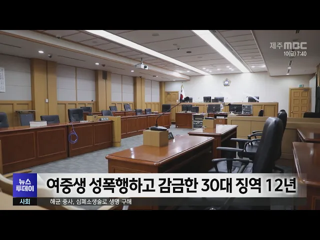 뉴스투데이 뉴스데스크뉴스투데이기획뉴스유튜브 뉴스페이스북 뉴스 prev 2023.11.10 - 금요일 next 여중생 성폭행하고 감금한 30대 징역 12년 여중생을 성폭행하고 부모에게 돈까지 뜯어낸 30대에게 실형이 내려졌습니다. 제주지방법원 제2형사부는지난 5월 집에가던 여중생을 쫓아가 성폭행 하고,감금한 뒤 부모를 협박해 돈 4만 원을 받아낸 30... 김하은 친구 폭행하고 동영상 유포…징역형 확정 동급생을 폭행하고동영상을 찍어 유포한 학생들에게 징역형이 확정됐습니다. 제주지방법원 제2형사부는 가해 학생들의 파기환송심에서 피해자를 폭행한 학생은 단기 1년을, 촬영한 학생은 단기 10개월, ... 김하은 특성화고 일반고 전환 대안 용역 반영 요청 신제주권 중·고교 신설 등에 대한타당성 연구용역이 진행 중인 가운데,양경호 도의원이 특성화고의 일반고 전환 대안을 용역에 반영해 달라고 요청했습니다. 양경호 의원은 제주도교육청과 제주대 용역진... 홍수현 택시요금 20일부터 4,100원…밤11시부터 할증 4천100원으로 요금 인상이 확정된 택시 기본요금이 오는 20일부터 적용됩니다. 제주도는택시운임과 요율적용 기준을 고시하고 오는 20일 0시부터 기본 요금을 기존 3천300원에서 4천100원으로 인상한다고... 이소현 오전까지 '비'..비 그치고 쌀쌀해져요 금요일 아침 기압골의 영향으로 제주에 비가 내리고 있습니다비구름대가 동쪽으로 이동하면서오전까지 비가 가끔 내릴 텐데요5~10mm 정도 조금 내리겠습니다비가 그치면 쌀쌀해지겠습니다비구름이 물러나... 정희원 [대전]아시아 최대 데이터센터 세종에 ◀ 앵 커 ▶아시아 최대 규모를 자랑하는네이버 데이터센터가 세종에 문을 열었습니다.세종시는 네이버와 함께 산학연 협력과시민을 위한 IT 교육도 강화하기로 했습니다.이승섭 기자입니다.◀ 리포트 ▶세종... 권혁태 [전력시장의 비밀]③ 역행하는 정부 정책 ◀ 앵 커 ▶그동안 재생에너지 보급과 관련해 정부는 거꾸로 가는 정책을 펼쳐왔습니다.특히 제주지역 출력제한 문제에 대해 손을 놓고 있던 정부가 뒤늦게 구체적인 해법을 제시했는데요.그동안 보여준 소... 송원일 4·3 포함 제주 예산 국회서 85억 원 증액 4.3 등 제주 관련 정부 예산 85억원이국회 행정안전위원회 심사에서 증액됐습니다. 더불어민주당 송재호 의원에 따르면국비를 50%만 편성해 논란이 일었던 국립 국가폭력트라우마 치유센터제주 분원 예산... 조인호 '재산 없는 재단'…4·3평화재단 논란 배 ◀ 앵 커 ▶ 제주 4.3평화재단 이사장을도지사가 임명하는 조례 개정안을 둘러싼 논란이 장기화되고 있는데요. 논란의 배경에는재단의 재정 문제가 깔려있습니다. 4.3 평화재단은 정치적 독립을 유지하기 위... 조인호 (아침)질병에 시달리는 소방대원들…실태조사 절 ◀ 앵 커 ▶ 언제나 우리 곁에서 화재와 구급 상황에 대비하고 있는 소방대원들은 교대근무와 화재 현장의 온갖 위험에 노출돼 여러 질병에 시달리고 있는데요, 이들에 대한 실태조사는 제대로 이뤄지지 못... 홍수현