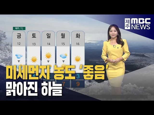 뉴스투데이 뉴스데스크뉴스투데이기획뉴스유튜브 뉴스페이스북 뉴스 prev 2024.1.11 - 목요일 next [원주]드림프로그램 20주년...'감동과 성장' 스토리 ◀ 앵 커 ▶눈이 없는 나라 청소년들에게동계스포츠를 소개하고, 훈련을 돕는드림프로그램이 올해로 20주년을 맞았습니다.지금 평창과 강릉에서는 청소년 선수들의훈련이 한창인데요.2024강원겨울청소년 올... (아침:목) 희망 나눔 캠페인 다음은 제주MBC에 희망 나눔캠페인성금을 보내주신 분들입니다. 제주시 관광축제 추진협의회에서 130만 원, 설빙 제주아라점 오정은 대표 외 한 명이 100만 원, 제주북초등학교에서 온기나무 성금 기탁 행... 김찬년 "제주 경제 관광객 증가로 부진 흐름 완화" 최근 관광객 증가와 소비 개선 등으로 제주경제 부진 흐름이 다소 완화됐지만고용감소와 건설 부진으로 회복세가 제약되는 것으로 나타났습니다. 한국은행 제주본부에 따르면 지난달 제주 방문 관광객은 1... 조인호 접수 사건 마음대로 반려한 경찰 재판행 경찰이 접수된 사건을 수사하지 않고고소인과 고발인 동의 없이 사건을 반려했던 사실이 뒤늦게 드러났습니다.제주경찰청에 따르면제주서부경찰서 소속 김 모 수사관은지난 2019년부터 2021년까지 업무가 ... 이따끔 외국인 여성 성매매 강요 일당 항소심도 징역형 외국인 여성을 감금해 성매매를 강요한 일당이항소심에서도 징역형을 받았습니다.광주고등법원 제주제1형사부는 성매매 강요 등의 혐의로 기소돼 1심에서 징역 1년에서 최대 2년까지 받은 40대 업주 등 피... 이따끔 불법 조업 중국어선 1척 나포 우리 해역에서 허가를 받지 않고조업한 중국어선 1척이 나포됐습니다.제주해양경찰서는그제(9일) 저녁 7시 반쯤제주시 차귀도 남서쪽 139km 해상에서허가를 받지 않고 갈치와 조기 등 어류 600kg를 잡은 ... 이따끔 한라산 탐방객 지난해 8.6% 증가..영실 코스 '인기' 지난해 한라산을 오른 탐방객이 크게 늘어난 가운데 영실코스 인가가 가장 좋았습니다.한라산국립공원관리소에 따르면 지난해 탐방객은 92만 3천여 명으로 재작년보다 8.6% 증가했습니다. 코스별로는 영... 김찬년 제주 등록 차량 70만 대 돌파 제주에 등록된 차량 대수가 70만 대를 넘어섰습니다. 제주도에 따르면 지난해 연말 기준 도내에 등록된 차량은 70만 3천200여 대로지난 2017년 50만 대 돌파 이후 6년 만에 20만 대가 늘었습니다. 차종별... 김찬년 제주특수교육원 설립 늦어질 듯 장애학생들을 위한 특수교육원 설립이늦어질 것으로 보입니다.제주도교육청에 따르면 제주특수교육원 설립을 위해지난해 연구용역을 마무리했지만올해 세수 감소에 따른 시설사업 순위에서 뒤로 밀리게 됐... 홍수현 오늘부터 경기산 가금육 · 생산물 반입 금지 오늘(11일) 새벽 0시부터 경기산 가금육과 생산물의 도내 반입이 금지됩니다.제주도는지난 8일 경기도 안성시 닭 농장에서고병원성 조류인플루엔자가 발생함에 따라전남과 충남에 이어 경기 지역의 가금산... 박주연 어제보다 기온 올라..제주 대체로 맑고 공기질 '깨끗' 오늘 아침은 맑은 하늘로 시작하고 있습니다기온도 어제보다 오르겠는데요제주의 아침 기온 4.9도로 시작했고낮에는 11도까지 올라 어제보다 3도가량높겠습니다 내일도 예년 기온을 웃돌면서크게 춥지 않... 정희원