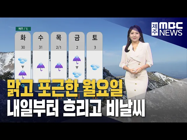 뉴스투데이 뉴스데스크뉴스투데이기획뉴스유튜브 뉴스페이스북 뉴스 prev 2024.1.29 - 월요일 next [목포] 저탄소 유기농 해남쌀..미국 수출 본격화(R) ◀ 앵 커 ▶ 저탄소 유기농으로 재배한 해남쌀이 미국 수출길에 오릅니다.미국 유기농 유통업체와 수출 협약을 체결했는데, K푸드의 인기를 타고냉동김밥 시장에도 진출할 것으로 보입니다.목포MBC 신광하 ... 제주 상위 0.1% 직장인 평균 연봉 10억 제주에서 근로소득 상위 0.1% 직장인의 평균 연봉이 10억 원 이상인 것으로 나타났스니다. 국세청 시도별 근로소득 신고 현황에 따르면재작년 제주지역 상위 0.1%의 평균 급여는10억 605만 원으로 13억 8... 김찬년 중국 난징시민 87% "제주 방문 계획 있다" 제주와 가깝고 직항 노선이 운항 중인중국 난징 시민들이 제주 여행에 관심이 많은 것으로 조사됐습니다.제주연구원이 지난해 10월 난징 시민 357명을 설문 조사한 결과86.8%가 제주 방문 계획이 있다고 ... 김찬년 소상공인 풍수해보험 무료가입 지원 제주지역 소상공인들에게풍수해보험 무료 가입이 지원됩니다.제주도소상공인연합회는 소상공인 영업장의 태풍과 호우, 홍수 등의 자연재해로 발생하는 재산피해를 보상하는 풍수해보험 가입을 무료로 지원... 홍수현 (주간이슈) 총선 공천 · NLCS 제주 매각 본격화 ◀ 앵 커 ▶ 오는 4월 10일 실시되는국회의원 총선거를 앞두고각 정당들이 본격적인공천 일정에 들어갑니다. 제주영어교육도시의 첫 국제학교인NLCS제주 매각이 추진 중인 가운데 우선 협상대상자가 선정됩... 박주연 오늘까지 맑아요! 내일 늦은 오후부터 '비' 오늘 하늘이 맑게 드러났습니다아침 출근길은 쌀쌀하지만 낮에는 예년 기온을 조금 웃돌면서 크게 춥지 않겠습니다서귀포는 11도까지 오를 전망입니다오늘 서해상으로 다가오는이동성고기압이 영향을 받겠... 정희원