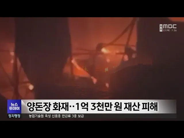 뉴스투데이 뉴스데스크뉴스투데이기획뉴스유튜브 뉴스페이스북 뉴스 prev 2024.2.22 - 목요일 next 양돈장 화재‥돼지 1억 3천만 원 재산피해 어제(21일) 새벽 5시쯤제주시 조천읍 와흘리의 한양돈장에서 불이 났습니다. 이 불로 양돈장 7개동 중분만사 1개동이 불에 타고돼지 72마리가 폐사하는 등소방서 추산 1억 3천만 원의 재산 피해가 났습니... 김하은 한동훈 협박글 올린 40대 남성 검찰 송치 한동훈 국민의힘 비상대책위원장에 대한협박글을 올린 40대 남성이검찰 수사를 받게 됐습니다. 제주경찰청은지난달 2일 밤 카카오톡 오픈 채팅방에 '한동훈 위원장이 광주에 오면가만두지 않겠다'는 내용... 김하은 버스 준공영제 불편 신고 늘어…"폐지해야" 제주도가 해마다 천억 원이 넘는 예산을버스 준공영제에 투입하고 있지만서비스는 나빠진 것으로 나타났습니다. 국민의힘 강경문 도의원에 따르면 버스 불편신고는 지난 2천21년 450건에서2022년 524건 지... 조인호 전기 자전거 구입 시 최대 50만 원 지원 전기 자전거를 구입할 경우최대 50만 원이 지원됩니다. 제주도는전기 자전거를 구입할 경우 지원하는 금액을기존 30만 원에서 최대 50만 원으로 높였습니다. 지원 대상은제주에 1년 이상 주민등록을 둔18... 이소현 더불어민주당 제주시갑 경선 문대림 승리 더불어민주당 제주시갑 선거구 국회의원 후보 경선에서문대림 예비후보가 현역의원인 송재호 예비후보에게 승리했습니다. 더불어민주당 중앙당 선거관리위원회는 어젯밤 제주시갑 등 전국 21개 선거구의 ... 조인호 [경남]봄철 별미 남해안 멍게 수확 시작 ◀ 앵 커 ▶봄철 남해안의 별미인 멍게가 수확에 들어갔습니다. 올해는 성장이 양호해 알이 굵어 평년보다 좋은 가격에 팔리고 있는데요,어민들은 폐사없이 무사히 수확이 끝나기를 바라고 있습니다. 정성오... 해안지역 강풍주의보..모레까지 가끔 '비' 밤사이 전국 대부분 지역에 많은 눈, 비가 내렸습니다제주도는 바람이 강하게 불고 있는데요서부지역을 제외한 해안지역과 추자도에강풍주의보가 발효 중입니다오늘도 항공편과 여객선 운항에 차질이 예상... 정희원