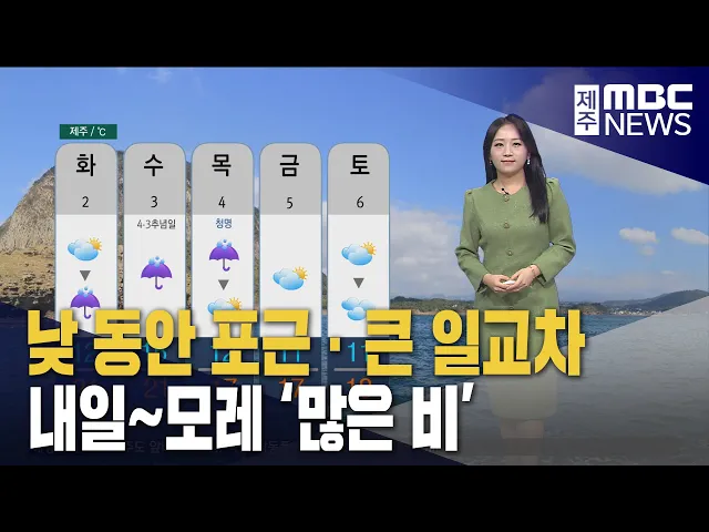 뉴스투데이 뉴스데스크뉴스투데이기획뉴스유튜브 뉴스페이스북 뉴스 prev 2024.4.1 - 월요일 next 중부발전 신규 LNG발전소 건설 환평 절차 시작 제주시 삼양동 화력발전소 부지에 신규 LNG발전소를 건설하기 위한 환경영향평가 절차가 시작됐습니다. 제주도는 한국중부발전이 삼양동 화력발전소 내 2만 4천여 제곱미터 부지에 150MW 규모의 LNG발전... 송원일 교통유발부담금 부과 대상 전수조사 제주시가 공정하고 정확하게 교통유발부담금을 부과하기 위해 전수조사를 벌입니다. 이에 따라 이달부터 오는 6월까지 연면적 천 제곱미터 이상 등 올해 교통유발부담금 부과 대상 시설물 3천398곳을 전... 송원일 문창우 주교 "총선 후 갈등‥희망 놓치 말아야" 천주교 제주교구 문창우 비오 주교는 2024년 부활절을 맞아 사목 서한을 통해 9일 앞으로 다가온 총선 이후우리 사회가 갈등을 성숙하게 극복할 수 있어야 한다고 밝혔습니다. 문창우 주교는 총선 결과에 ... 홍수현 [대전] 109년 유성 호텔 폐업..지역 상권은? ◀ 앵커 ▶대전 온천 관광을 대표하는 유성호텔이 이달 말 문을 닫습니다.개장한 지 109년이나 됐지만온천 관광이 쇠락하자 결국 경영난을 이기지 못한 것인데요.유성을 대표하는 호텔들이 줄줄이 폐업하면... [강원영동]강원 농어촌유학, '마을도, 유학생도 만족' ◀ 앵 커 ▶우리 지역의 인구 소멸과학령 인구 감소 문제는 점점 심각해지고 있습니다.그런데 '강원 농어촌 유학' 프로그램으로학생과 학부모가 마을을 찾으며인구도 늘고 활기를 띠고 있는 곳이 있다고 합... 포근한 4월의 첫날..내일 오후부터 '많은 비' 4월의 첫날 포근한 봄 날씨를 보이겠습니다오늘 제주의 아침 기온 10.3도로 시작해낮에는 20도까지 오를 텐데요낮 기온이 평년보다 6도가량 높아서 당분간 포근하겠습니다하늘이 맑아서 낮과 밤의 기온차... 정희원 (주간이슈)4·3 희생자 추념식‥사전투표 시작 ◀ 앵 커 ▶오는 3일,제76주년 4·3 희생자 추념식이 열리고, 추념 기간을 맞아 제주뿐만 아니라 전국 곳곳에서 다양한 행사가 마련됩니다. 오는 5일에는 국회의원 선거 사전투표도 시작됩니다. 이번 주 주요... 이따끔