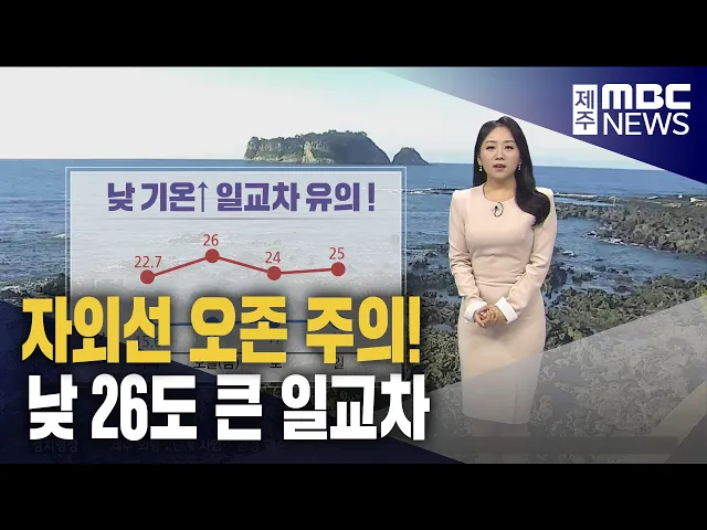 뉴스투데이 뉴스데스크뉴스투데이기획뉴스유튜브 뉴스페이스북 뉴스 prev 2024.5.17 - 금요일 next 전국소년체전 30개 이상 메달 획득 목표 제주선수단이 오는 25일부터 전라남도 일원에서 열리는제53회 전국소년체육대회에서 30개 이상의 메달 획득을목표로 잡았습니다.제주도체육회는이번 소년체전에 수영과 유도,태권도 등 30개 종목에458명의... 김항섭 교권침해 교원 심리상담·법률지원 등 적극 시행 최근 한 고등학교에서 발생한 교권침해에 대해교육청이 피해 교원 보호와 지원에 나섭니다.제주도교육청은 교육활동 침해 사안이 발생할 경우,가해 학생과 교원을 즉시 분리하고피해 교원에게 특별휴가를 ... 홍수현 제주 낮 26도..자외선 강해 오존농도 '나쁨' 주말을 앞둔 금요일 아침쾌청한 하늘이 드러났습니다오늘도 큰 일교차에 염두에 두셔야겠는데요낮 기온은 어제보다 더 올라서제주 북부지역은 26도까지 오르겠습니다일교차가 10도 이상 크겠습니다한낮에... 정희원