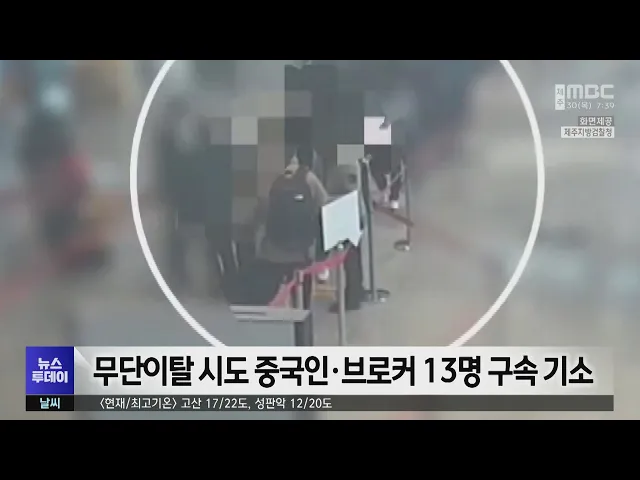 뉴스투데이 뉴스데스크뉴스투데이기획뉴스유튜브 뉴스페이스북 뉴스 prev 2024.5.30 - 목요일 next 무단이탈 시도 중국인·브로커 13명 구속 기소 무사증으로 제주에 들어온 뒤위조 신분증을 이용해 무단 이탈을 시도한중국인과 이들을 도운 브로커가 무더기로 재판에 넘겨졌습니다. 제주지방검찰청은제주도를 이탈하려 한 중국인 9명과이들에게 위조 ... 김하은 오름 공용화장실 바닥 꺼져‥고교생 1명 구조 오름 공용화장실 바닥이 꺼지는 사고가 나10대 한 명이 갇혔다 구조됐습니다.어제(29일) 오후 3시 10분쯤제주시 구좌읍 용눈이오름 입구 공용화장실에서바닥이 꺼지는 사고가 났습니다.이 사고로 안에 있... 권혁태 금은방 절도 중국인 피의자 도피 도운 일행 구속 제주의 한 금은방에서 발생한중국인 귀금속 절도 사건과 관련해도주한 피의자를 도운 일행이 경찰에 구속됐습니다. 제주서부경찰서는절도 피의자가 중국으로 달아난 뒤피의자의 여자친구에게 휴대전화 대... 김항섭 낮부처 차차 흐려져..서귀포시 한낮 자외선 유의! 오늘 아침은 선선합니다어제 아침보다 하늘에 구름이 많이 껴 있는데요서해남부해상에 위치한 고기압의 가장자리에 들면서 오늘 구름 낀 날씨를 보이다 낮부터 차차 흐려지겠습니다구름 낀 날씨여도 자외... 정희원