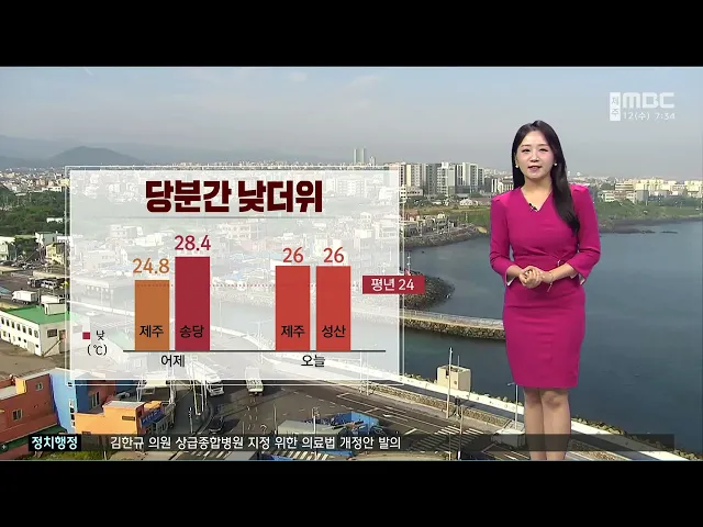 뉴스투데이 뉴스데스크뉴스투데이기획뉴스유튜브 뉴스페이스북 뉴스 prev 2024.6.12 - 수요일 next 서귀포 의류매장 화재..50여 건 신고 오늘 아침 6시 10분쯤서귀포시 동홍동 남주고등학교 사거리의 한 의류매장에서 불이 나 소방 당국이 화재 진압을 벌이고 있습니다. 불이 난 곳은 가건물로 불길이 크게 번져 화재 진압에 어려움을 겪고 있... 김항섭 제주 맑고 햇볕 강해..어제보다 더워요! 오늘도 가벼운 옷차림 하시기 바랍니다.어제보다 더 덥겠습니다.하늘이 맑아서 오전부터 자외선이 강하겠는데요자외선 지수가 오후 3시까지 '매우 높음' 수준을 보이겠습니다.햇볕 차단 잘 해주시기 바랍... 정희원 [안동]지하수 활용 냉난방..70~90% 비용 절감 효과 ◀ 앵 커 ▶시설재배 농가의 가장 큰 어려움은겨울철 난방비와 여름철 냉방비 부담인데요. 연중 온도가 일정한 지하수를 냉난방에 이용하는 기술이 개발돼 7월에도 딸기 생산이 가능하다고 합니다. 안동MBC ...