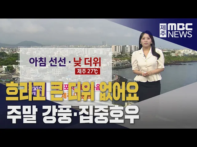 뉴스투데이 뉴스데스크뉴스투데이기획뉴스유튜브 뉴스페이스북 뉴스 prev 2024.7.12 - 금요일 next 폭염 한풀 꺾여..주말 다시 강한 '장맛비' 장맛비가 소강상태에 들면서 폭염의 기세가 잠시 잦아들었습니다. 현재 장마전선은 제주도 남쪽 해상으로 내려왔는데요 대기 상층에 차고 건조한 공기가 버티고 있어서 열대야도 쉬어가겠고 아침, 저녁... 정희원 일회용컵 보증금제 적극 참여 매장 물품 지원 일회용컵 보증금제에 참여하는 매장에 종량제 봉투 등이 지원됩니다. 제주도는내일(12일)부터 12일 동안일회용품 보증금제 이행과 반환량 등을 평가해80점 이상 점수를 받은 매장에는자동 라벨 분배기와 ... 박주연 서귀포시 "종합체육관 건립 턴키 방식 불가피" 서귀포시종합체육관 건설이 대형건설업체에 맡겨져 지역업체가 소외됐다는논란에 대해 서귀포시가 불가피한 선택이라고 해명했습니다.서귀포시가 2026년 전국체전을 위한종합체육관 건립에 설계부터 시공... 조인호 가스 밸브 자른 30대 남성 집행유예 제주지방법원 홍은표 판사는가스 방출 혐의로 재판에 넘겨진30대 남성에서 징역 1년에 집행유예 3년을 선고하고, 120시간의 사회봉사를 명령했습니다. 이 남성은 지난 4월 20일제주시 한림읍의 한 빌라에... 김항섭