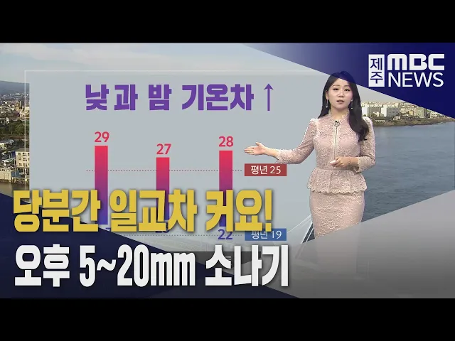 뉴스투데이 뉴스데스크뉴스투데이기획뉴스유튜브 뉴스페이스북 뉴스 prev 2024.9.26 - 목요일 next 제주 낮 최고 29도 더위..오후 '소나기' 내려요 걷기 좋은 계절이 이어지고 있습니다. 목요일 아침 출근길도 쾌청한데요 한낮에는 가을볕이 강해서 29도까지 오르겠고 평년보다 따뜻하겠습니다. 어제 기상청이 10월까지는 평년기온을 웃도는 날씨가 이... 정희원 오영훈 지사, 추자해상풍력 에퀴노르 본사 방문 오영훈 제주도지사가추자해상풍력발전사업을 추진하고 있는노르웨이 국영기업인 에퀴노르 본사를 방문했습니다. 오영훈 지사는 풍력자원을 공공자원으로 관리하는 제주의 정책에 대한 이해가 필요하며 인... 조인호 반려동물 동반 뱃길 제주 여행 3만 원 지원 뱃길로 반려동물과 함께제주여행을 하는 여행객들에게 3만 원이 지원됩니다.제주도와 제주관광협회는제주기점 뱃길 관광활성화와 문화 정착을 위해반려 동물 동반 여행객에게왕복 여행 시 1인당 3만 원을... 박주연