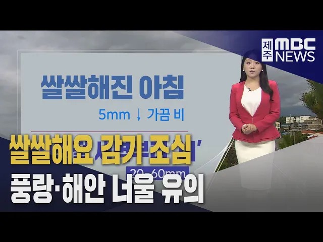 뉴스투데이 뉴스데스크뉴스투데이기획뉴스유튜브 뉴스페이스북 뉴스 prev 2024.10.2 - 수요일 next '감기 조심하세요' 기온 뚝!쌀쌀..개천절 비 오늘은 옷차림에 유의하셔야겠습니다. 긴소매 옷을 챙겨 입으셔야겠는데요 북쪽에서 찬 공기가 내려오면서 아침 공기가 쌀쌀해졌습니다. 제주의 아침 기온 20도로 시작하고 있고요 아침까지 5mm 미만의 ... 정희원 갯바위 낚시객 2명 파도에 휩쓸려..1명 실종 갯바위 낚시객들이 파도에 휩쓸려 한 명이 실종됐습니다.어제(1일) 오후 5시 10분쯤서귀포시 황우지해안 선녀탕 주변 갯바위에서 낚시를 하던 50대 남성 두 명이 파도에 휩쓸렸습니다. 이 가운데 한 명은 ... 이따끔 제주 제조업체 10곳 중 7곳 "실적 목표 미달" 경기 침체가 이어지면서제주지역 제조업체 10곳 가운데 7곳 이상이 영업 실적 목표 달성이어려운 것으로 나타났습니다. 제주상공회의소가지난 8월 21일부터 2주 동안제주지역 제조업체 79곳을 대상으로 ... 박주연 불법 개조 이륜자동차 합동 집중 단속 실시 이륜자동차 합동 집중 단속이실시됩니다. 서귀포시는이륜자동차의 굉음과 불법 개조로 인한소음 민원이 증가함에 따라이번달 한달 동안 경찰 등 유관기관과 함께합동단속을 벌인다고 밝혔습니다. 단속 주... 박주연 7일부터 송악산 둘레길 탐방로 일부 출입통제 송악산 둘레길 탐방로에 대한긴급 보수가 이뤄집니다. 서귀포시는오는 7일부터 다음달 말까지1전망대부터 데크 종점까지700m구간에 대해긴급 보수를 진행하기 위해출입을 통제한다고 밝혔습니다. 많은 탐... 박주연 2052년 제주 고령인구 10명 중 4명 2052년에 고령인구 비중이10명 중 4명으로 증가할 것으로 전망됐습니다. 통계청은제주지역 65세 이상 고령 인구 비중이오는 2038년에는 31.5%,2052년에는 40.9%까지비중이 높아질 것이라고 전망했습니다.... 박주연