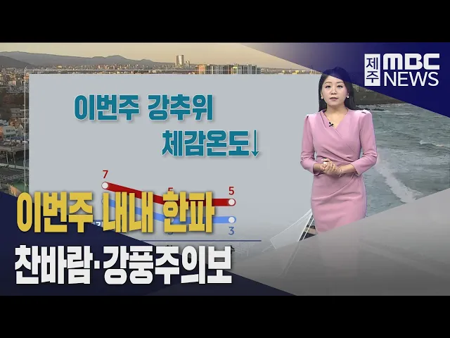 뉴스투데이 뉴스데스크뉴스투데이기획뉴스유튜브 뉴스페이스북 뉴스 prev 2025.2.17 - 월요일 next 다시 찬공기 남하‥이번주 강추위 체감온도 '뚝' 온화했던 날씨도 잠시, 다시 강추위가 찾아오겠습니다.찬 대륙고기압이 확장하면서북서쪽에서 찬 공기가 내려오겠는데요찬바람이 불어서 체감온도도 낮겠습니다.현재 아침 체감온도 제주는 0도, 고산은 영... 정희원 학교폭력 피해 응답률 2.8%‥전국 웃돌아 제주지역 학생들의 학교폭력 피해 응답률이 전국 평균을 웃도는 것으로 나타났습니다. 제주도교육청의 학교폭력 실태조사에 따르면 학교폭력 피해를 경험했다는 피해응답률은 재작년 2.8%로, 전국 평균 2.... 김찬년 제주 5년 동안 공사장 화재 39건‥5명 부상 최근 부산의 리조트 신축 공사장에서 불이 나 6명이 숨진 가운데 제주에서도 5년 동안 39건의 공사장 화재가 난 것으로 집계됐습니다. 제주도소방안전본부에 따르면 지난 2020년부터 5년 동안 제주에서 39... 김찬년 서귀포시 퇴직 공무원 고독사 예방활동에 투입 퇴직 공무원들이 고독사 예방활동에 투입됩니다. 서귀포시는 올해 인사혁신처가 주관하는 퇴직공무원 사회공헌사업에 선정돼, 위기가구를 발굴하고 복지서비스 업무를 지원할 퇴직공무원들을 복지매니저로... 김찬년 위성곤 민주당 국회의원 항만하역 요금 결정에 주민 참여 개정안 발의 민주당 위성곤 국회의원이 항만하역요금 결정에 주민들이 참여할 수 있는 항만운송사업법 개정안을 대표 발의했습니다. 개정안에는 항만하역요금 인가 시 도서 지역 주민협의체와 이용자 단체가 의견수렴 ... 김찬년 "택배 압류돼 개인정보 필요"‥전화금융사기 '주의' 최근 택배가 압류됐다는 전화 금융사기가 기승을 부리고 있어 주의가 필요합니다. 제주경찰청에 따르면 지난 설 연휴부터 배송 중인 택배 물품이 경찰에 압류돼 소명 자료를 내야 한다며, 개인정보를 요구... 이따끔 읍면지역 찾아가는 재능기부 봉사 추진 읍면지역 어르신들을 찾아가 재능 기부를 하는 '자원봉사하기 좋은 온도' 사업이 추진됩니다. 좋은 온도 사업은 자원봉사자들이 생활편의 시설 접근성이 낮은 읍면지역 어르신들을 직접 찾아가 다양한 재... 김찬년