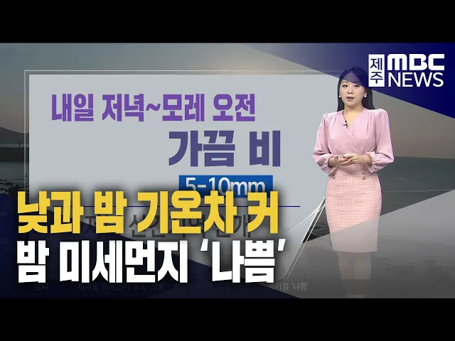 뉴스투데이 뉴스데스크뉴스투데이기획뉴스유튜브 뉴스페이스북 뉴스 prev 2025.2.26 - 수요일 next 버스요금 조정 공론화 위한 공청회 내일 개최 11년 만에 제주 버스요금이 오르는 가운데 도민들 의견을 듣는 공청회가 내일(27일), 제주농어업인회관에서 열립니다. 이번 공청회에서는 버스요금 체계 개선 방안 용역 결과를 설명하고 토론과 질의응답... 김찬년 항만·국가어항 개발 708억 원 투입 제주도가 올해 708억 원을 투입해 항만과 국가어항 개발사업을 추진합니다. 제주항 화물부두에는 2만 톤급 선박이 들어올 수 있도록 제주외항 2단계 개발 공사를 진행하고, 서귀포항은 기존 5천 톤급에서 ... 이소현 해녀 안전사고 예방 스마트워치 48건 감지 해녀들의 안전 사고 예방을 위해 보급된 스마트워치를 통해 50건에 육박하는 응급신호가 접수됐습니다. 제주도는 지난 2022년 스마트워치 보급 사업을 시작으로 2년 동안 9개 어촌계에 200대의 스마트워치... 이소현 제주 분산에너지 지원센터 운영 시작 분산에너지 기업을 육성하는 지원센터가 문을 열고 운영에 들어갔습니다. 제주에너지공사에 위치한 분산에너지 지원센터는 도내 재생에너지 확대와 전력계통 안정화를 위한 지휘 본부 역할을 하게 됩니다.... 김찬년 맑고 큰 추위 없어‥밤부터 공기질 탁해 매서웠던 추위가 물러가고기온이 차츰 오르고 있습니다.제주시는 아침 기온이 어제보다7도 이상 높게 시작하고 있는데요낮에도 12도까지 올라 큰 추위 없겠습니다.내일은 14도까지 오르면서평년기온을 웃... 정희원