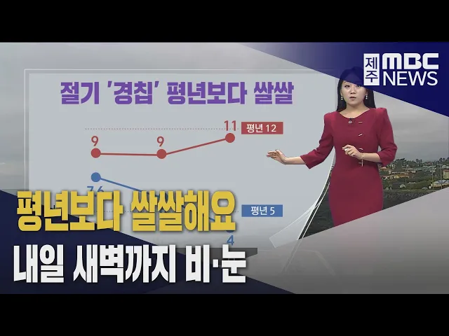 뉴스투데이 뉴스데스크뉴스투데이기획뉴스유튜브 뉴스페이스북 뉴스 prev 2025.3.5 - 수요일 next 절기'경칩'이지만 아직 겨울‥제주산지 '눈' 어느덧 봄의 세 번째 절기 경칩입니다.이맘때면 겨울잠을 자던 개구리도 깨어날 만큼 따스해지는 시기인데요절기상으로는 봄이지만계절은 아직 겨울에 머물러 있습니다.당분간 평년기온을 밑돌면서쌀쌀하... 정희원 무면허 음주운전·신분증 위조 40대 중국인 구속 무면허 음주운전을 한 미등록 외국인이 경찰에 구속됐습니다. 제주서부경찰서는 지난 1월 제주시 애월읍에서 무면허 음주운전을 한 혐의로 40대 중국인 남성을 붙잡았고, 조사 결과 외국인 등록증까지 위... 이따끔 탈핵·기후위기 제주행동 "제주도는 버스 요금 인상 계획을 중단하라" 탈핵·기후위기 제주행동이 성명을 내고 제주도의 버스 요금 인상 계획 중단을 촉구했습니다. 이들은 버스가 제주도의 유일한 대중교통으로 요금 인상을 시도하는 건 헌법상 이동권을 제약하겠다는 말과 다... 박주연 제117회 세계여성의 날 기념행사 제주도 개최 제117회 세계 여성의 날 기념행사가 오는 8일 오전 10시부터 산지천 북수구 광장에서 열립니다. 올해 처음으로 야외에서 진행되는 이번 행사는 '제주 여성의 힘과 연대를, 성평등으로 빛나는 제주' 라는 ... 박주연