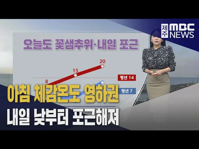 뉴스투데이 뉴스데스크뉴스투데이기획뉴스유튜브 뉴스페이스북 뉴스 prev 2025.3.19 - 수요일 next 북극한기 영향 꽃샘추위‥내일 낮부터 '따뜻한 봄' 북극에서 내려온 한기가 남아있어서오늘도 꽃샘추위가 이어지겠습니다.제주의 아침 기온 4도 안팎을 보이고 있지만현재 체감온도는 영하권으로 떨어졌는데요내일 아침까지 평년기온을 밑돌겠고찬바람도 불... 정희원 제주도사회협약위원회 "오름 고유 능선미 잃어‥경관 회복 추진해야" 제주도사회협약위원회가 오름 경관 회복을 위한 권고안을 채택했습니다. 권고안은 오름의 원형을 과거처럼 능선과 분화구가 드러나는 목초지 형태로 볼 것인지, 지금처럼 나무로 덮인 산림 형태로 볼 것인... 송원일 2025년 한라산신제 23일 봉행 2025년 제주도 한라산신제가 오는 23일 오전 11시 제주시 아라동 산천단에서 봉행됩니다. 한라산신제는 한라산 산신에게 도민의 안녕과 풍요를 기원하는 제례로, 탐라국 시대부터 내려온 것으로 전해지는 ... 송원일 도내 수돗물 노로바이러스 불검출 제주도 상하수도본부는 도내 정수장과 마을상수도 100여 곳에서 공급하는 수돗물의 노로바이러스를 검사한 결과 모두 안전한 것으로 확인됐다고 밝혔습니다. 노로바이러스는 구토와 설사를 일으키는 장염... 송원일