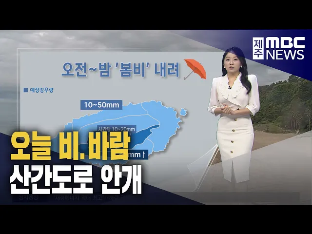 뉴스투데이 뉴스데스크뉴스투데이기획뉴스유튜브 뉴스페이스북 뉴스 prev 2025.5.1 - 목요일 next 5월의 첫날 '봄비'‥제주산지 시간당 10~20mm 내려 5월의 첫날인 오늘은전국에 반가운 봄비가 내리겠습니다.현재 제주 산지에는 건조주의보가 발효 중인데요오늘 오전부터 제주에 비가 내리면서 건조함은 차차 해소되겠고 늦은 밤까지비가 내릴 것으로 예... 정희원