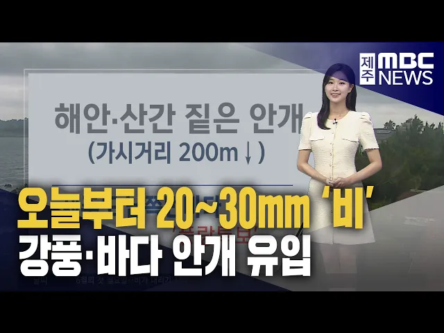 뉴스투데이 뉴스데스크뉴스투데이기획뉴스유튜브 뉴스페이스북 뉴스 prev 2025.6.2 - 월요일 next 급변풍 탐지 공항기상라이다 이달부터 운영 제주공항에서 이달부터 급변풍을 탐지할 수 있는 공항기상라이다가 전국에서 처음 운영을 시작합니다. 기상청에 따르면 현재 제주공항에 설치된 저층급변풍경고장비는 활주로 주변 약 30m 고도까지 탐지... 송원일 제주삼다수 유통 위탁판매사 선정 절차 돌입 제주삼다수의 유통을 맡을 새 위탁판매사를 선정하기 위한 절차가 시작됩니다. 제주도개발공사는 오는 4일까지 국내 다른 지역에서 삼다수 유통을 담당할 위탁판매사를 선정하기 위한 사전 규격 공개를 진... 홍수현 내년 한국후계농업경영인 전국대회 제주 개최 전국 최대규모 농업인 축제인 한국후계농업경영인 전국대회가 내년에 제주에서 열립니다. 이번 대회는 내년 3월 31일부터 4월 2일까지 제주시 새별오름 일대에서 열리며 전국 17개 시도에서 4만명 이상... 조인호 제주권역재활병원 진료 연간 5만명 돌파 제주권역재활병원의 지난해 진료인원이 5만 733명을 기록했습니다. 이는 재작년의 4만 5천명보다 12.7% 늘어난 것입니다. 2014년 개원한 제주권역재활병원은 뇌신경과 척수손상, 소아재활 등을 전문적... 조인호 제주시민복지타운 광장 분수대 6월 7일부터 가동 여름철 나들이 명소이자 물놀이 공간이 제주시민복지타운 광장 분수대가 오는 7일부터 가동됩니다. 6월과 9월에는 금요일부터 일요일까지 주 3일, 7월과 8월에는 화요일부터 일요일까지 주 6일 가동됩니... 조인호 서귀포시, 무인악취측정기 도입‥"축산악취 감시" 서귀포시는 축산악취로 인한 주민 불편을 줄이기 위해 무인악취측정기 2대를 도입했습니다. 축산농가 밀집지역인 대정읍 동일2리에는 고정식 무인악취측정기가 설치돼 일정 기준 이상 악취가 감지되면 ... 조인호 6월의 첫 월요일, 강한 '비' 오늘부터 제주 MBC에서 날씨 전하게 된 김희서입니다. 앞으로 정확하고 친절한 기상 정보로 함께하겠습니다.”오늘 나가실 때 우산 챙기셔야겠습니다. 제주는 현재 흐린 하늘빛을 보이고 있는데요.제주 곳... 김희서