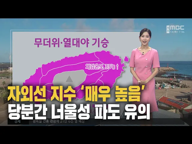 뉴스투데이 뉴스데스크뉴스투데이기획뉴스유튜브 뉴스페이스북 뉴스 prev 2025.8.14 - 목요일 next 제주도, 7개 핵심사업 국비 265억 원 건의 제주도가 7개 핵심사업을 추진할 국비 265억 원을 정부에 건의했습니다. 오영훈 제주도지사는 정부서울청사에서 구윤철 기획재정부 장관과 만나 국가 정책을 선도할 7개 핵심산업에 대한 국비 지원을 요청... 홍수현 광복절 연휴 관광객 21만 6천 명 전망 광복절 연휴에 관광객 21만 6천 명이 제주를 찾을 것으로 보입니다. 제주도관광협회는 오늘(13일)부터 닷새 동안 제주를 찾는 관광객은 21만 6천 명으로 지난해 같은 기간보다 1.5% 늘어날 것으로 전망... 박주연 안심 무인택배 보관함 18개로 확대 여성 안전과 주민 편의를 위한 안심 무인택배 보관함이 18개로 늘었습니다. 제주도는 최근 제주시 노형동주민센터와 서귀포시 삼다종합사회복지관에 안심 무인택배 보관함을 추가로 설치해 제주시 12곳,... 이따끔 제주 한우 도외 출하 늘어‥운송비 지원 확대 제주 한우의 다른 지역 출하가 크게 늘었습니다. 제주시에 따르면 지난해 다른 지역으로 출하된 제주 한우는 988마리로, 재작년 337마리보다 두 배 가까이 증가했고, 올들어서도 740여 마리가 도외로 출하... 홍수현 최고 체감온도 33도↑‥강한 자외선 유의! 오늘 제주는 맑은 하늘이 드러났습니다. 햇볕도 강하게 내리쬐면서 무더위의 기세는 나날이 강해지겠는데요. 어제 한낮 최고 기온 제주 지역은 33.3도, 서귀포 32.9도까지 올랐는데요. 체감온도는 1도에서... 김희서