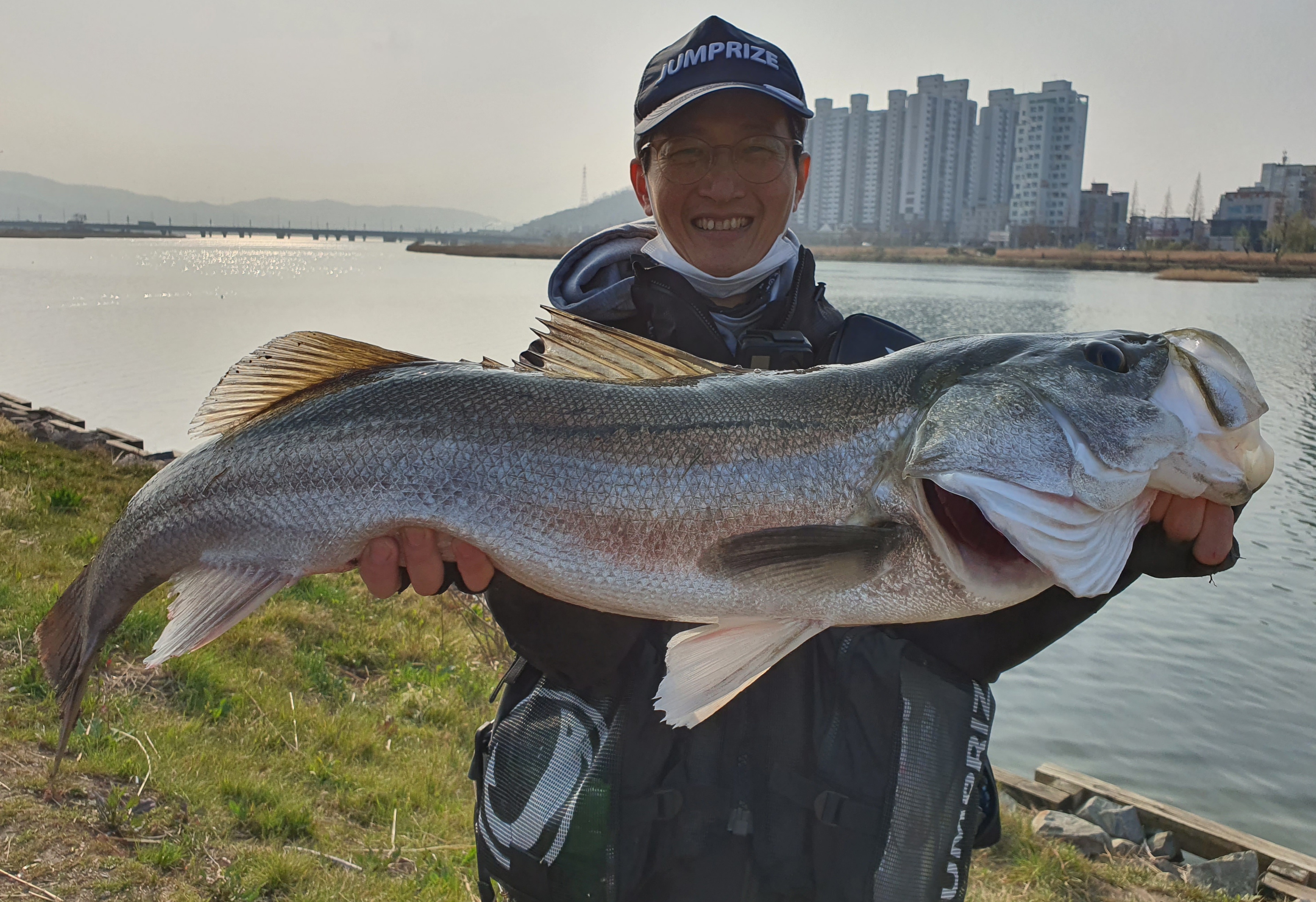 2021년 3월 13일 지난 토요일 오전 태화강에서 잡은 91센티미터 농어입니다.