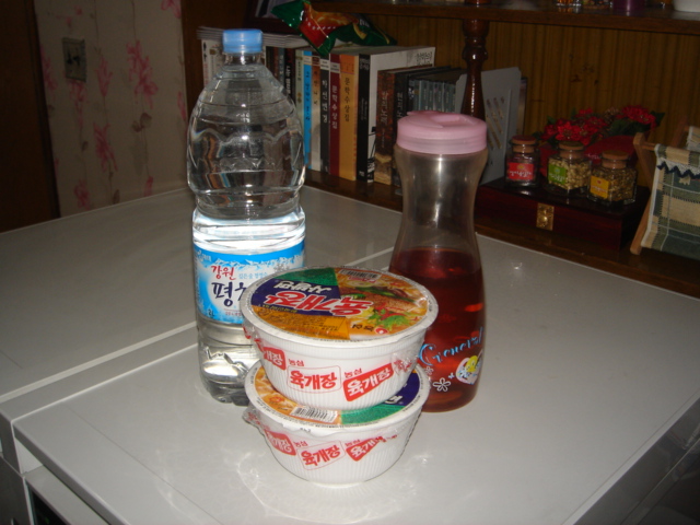 잠시 전 동네의 슈퍼에 가서 컵 라면과 생수를 샀습니다.