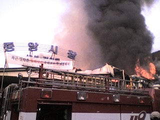 하여간 결국 어제(3월 12일) 아침 7시 반쯤 대전시 동구 중동에 위치한 중앙시장에서 난 불은 점포 12곳을 태운 뒤 1시간 20여 분만에 꺼졌다. 불이 난 뒤 소방차 35대(그 좁은 길이었기에 과연 화재 현장에 진입을 할 수 있었는지의 여부는 차치하더라도)와 소방대원 600여 명이 출동해 진화에 나섰지만 점포들이 대부분 목조건물인데다 밀집해 있어서 불길을 잡는데 큰 어려움을 겪었다고 전해졌다.