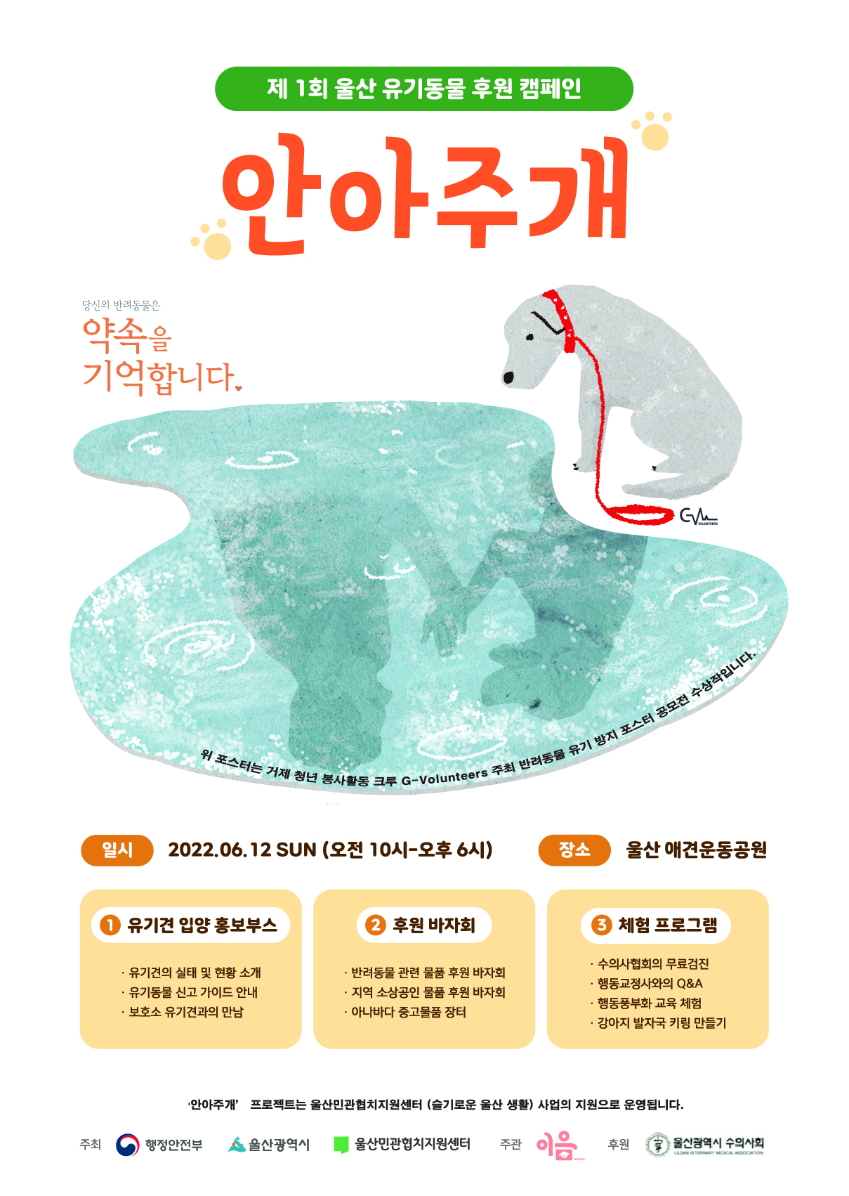 다름아니라 이번에 6월12일에 울산에서 첫회로! 보호소에 있는 유기동물들을 입양 진행하고 후원하는 캠페인 행사를 진행하게 되었습니다.
