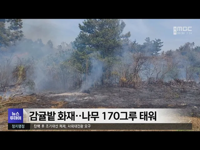 감귤밭 화재‥나무 170그루 태워