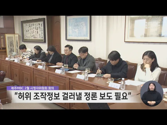 제주MBC 2월 시청자위원회 회의가 오늘, 본사 대회의실에서 열렸습니다. 이번 회의에서 시청자위원들은 탄핵 정국 속에 허위 조작정보들이 난무하고 있어 보다 정확한 정보로 내실있는 방송을 이어가달라고 주문했습니다. 또, 4.3을 앞두고 혐오와 차별을 조장하는 목소리가 또다시 대두될 수 있다며 이를 예방하고 대비...