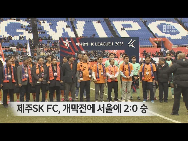 프로축구 K리그 제주SK FC가 2025 시즌 개막전에서 승리했습니다. 제주는 올 시즌 우승 후보인 서울FC와의 개막전에서 전반 14분 김준하을 선제골과 후반 11분 이건희의 추가골로 2대0으로 이겼습니다. 한편, 경기에 앞서 구단명 변경을 기념하는 선포식을 가진 제주는 올 시즌 공격 축구로 리그 상위 그룹으로 도약하겠...
