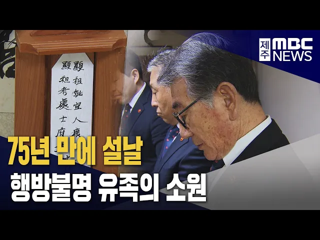 ◀ 앵 커 ▶ 시청자 여러분 을사년 한해 새해 복 많이 받으십시오. 설날을 맞아 조상을 기리며 차례를 지내신 분들 많을 텐데요. 행방불명됐던 할아버지를 75년 만에 찾아 처음으로 설날 차례를 지낸 4.3 유족들의 사연을 권혁태 기자가 전합니다. ◀ END ▶ 어느 것 하나 빠진 것 없이 정성껏 차려진 차례상. 조용히 향을...