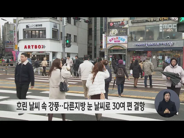 흐린 날씨..다른 지방 눈날씨로 항공기 결항 속출
