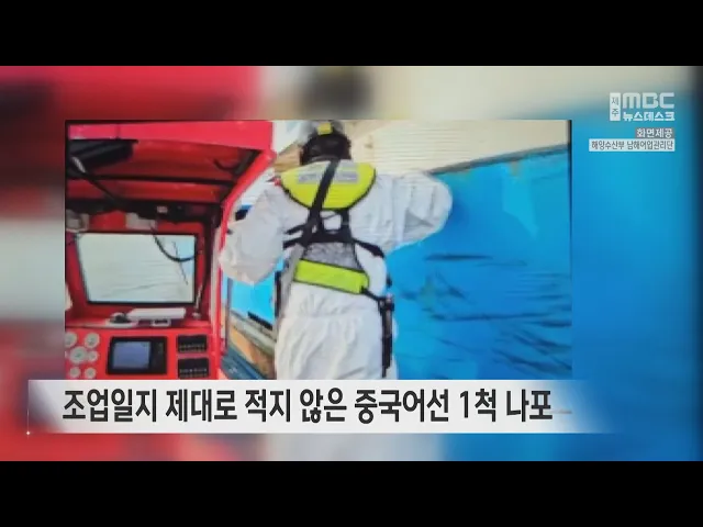 조업일지 제대로 적지 않은 중국어선 1척 나포