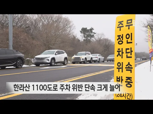 한라산 1100도로에서 주차위반 차량 적발이 폭증했습니다. 제주도에 따르면 지난달 21일부터 한라산을 관통하는 1100도로에서 주차위반으로 단속된 차량은 모두 753대로 전년 같은기간 대비 7배 늘었습니다. 이는 지난달부터 1100도로가 주정차금지 구역으로 추가 지정되며 CCTV와 자치경찰 차량을 이용한 단속이 강화됐...