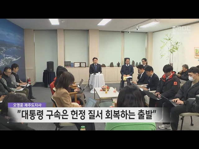 윤석열 대통령에 대한 구속영장이 발부된 가운데 오영훈 지사가 환영 입장을 내놨습니다. 오영훈 제주지사는 페이스북을 통해 내란 우두머리 윤석열에 대한 영장 발부는 헌정질서를 회복하는 출발이라고 밝히고 신속한 수사와 탄핵절차가 이뤄지를 촉구했습니다. 민주노총 제주본부도 성명을 내고 극우 폭동을 선동한 국...