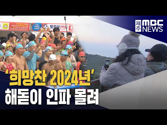 ◀ 앵 커 ▶ 시청자 여러분 안녕하십니까.새해 복 많이 받으십시오. 올해에도 뉴스데스크 제주는맥락이 있는 친절한 뉴스로 시청자 여러분께 다가가겠습니다. 새해 첫 날을 맞아 성산일출봉에는 해돋이를 보려는 인파가 몰렸고 중문해수욕장에서는 펭귄 수영대회가 열렸습니다. 새해 첫 날 표정을 권혁태 기자가 전해드립니다...