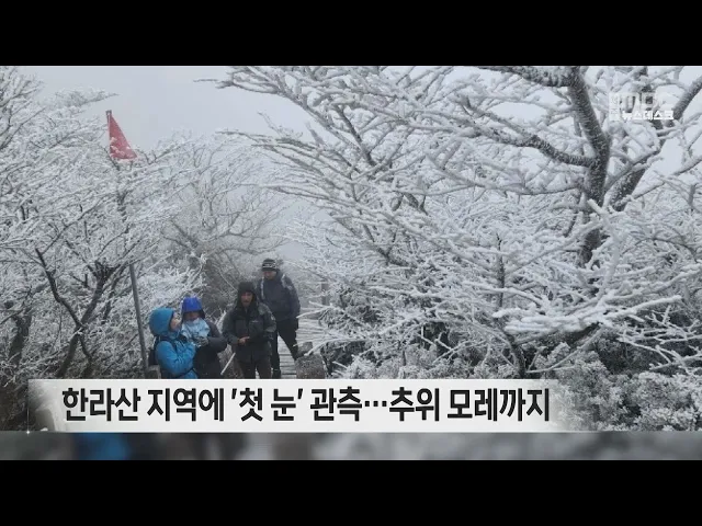 올 가을들어 한라산에 첫 눈이관측됐습니다. 제주지방기상청에 따르면북서쪽에서 내려온 찬공기로 인해한라산의 기온이 영하권으로 내려가면서오늘 새벽 첫 눈이 관측됐습니다. 이는 지난해보다 18일 빠른 것으로기록됐습니다. 또, 서귀포 지역은 낮최고 기온이 성산 9.1도,서귀포시 10.9도 등으로 올 가을들어가장 추웠습...