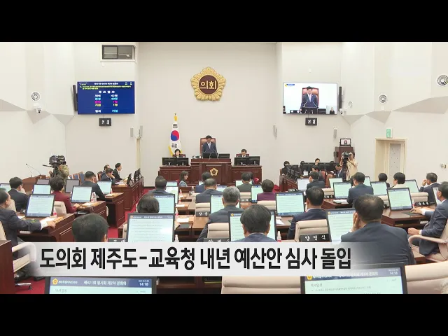 제주도의회가내년 제주도와 제주도교육청의예산 심사에 돌입합니다. 제주도의회는 오는 14일부터제422회 2차 정례회를 열고다음달 6일까지 23일 간의 일정으로제주도 예산안과 기금운용계획안,교육청 예산안 등을 심사합니다. 내년 예산안은 제주도 7조 2천100억 원,교육청 1조 5천900억 원 규모입니다.