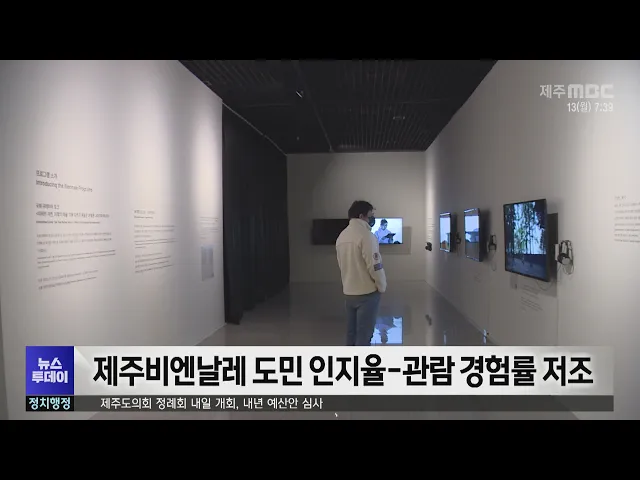 제주지역 최대 규모의 국제 미술행사인제주비엔날레에 대한 도민 인지도와관람경험률이 저조한 것으로 나타났습니다. 제주도립미술관이 도민 천 명과문화예술계 인사 204명을 대상으로 설문조사한결과, 도민 인지율은 46.3%에 그렸고제주비엔날레 관람 경험률은 3.1%에 불과했습니다. 또한, 제주비엔날레의 홍보와 소통 평...