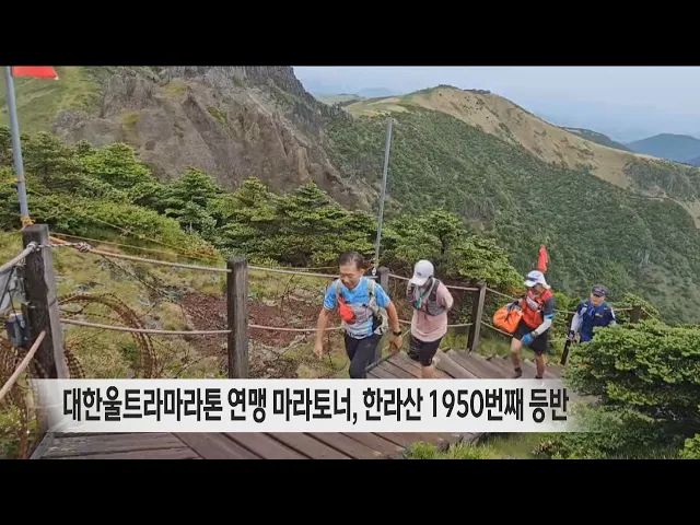21년 동안 한라산을 천950번 등반한 마라토너가 탄생했습니다. 대한울트라마라톤연맹 제주연맹에 따르면 오늘(18일) 오전, 소속 회원인 67살 고석범 씨가 한라산 백록담을 1950번째 등반했습니다. 고씨는 지난 2천2년부터 한라산 정상 등반을 시작했고 지금까지 마라톤 풀코스 250여 회, 100km 이상을 뛰는 울트라마라톤 5...