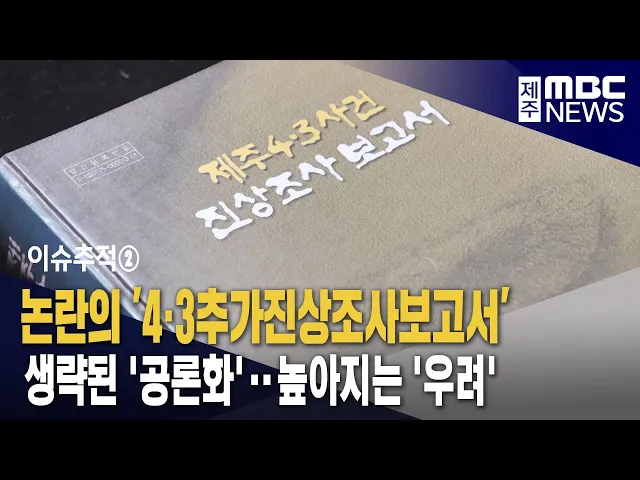 ◀ 앵 커 ▶ 22년 전 세상에 나온 제주4.3진상조사보고서의 한계를 극복하고 보완하기 위해, 3년 전 시작된 추가진상조사가 마무리됐습니다. 그러나 공론화 과정은 커녕 절차를 제대로 지키기 않았다며 반발이 터져나오고 있어 지역사회의 우려가 커지고 있습니다. 어떤 맥락에서 이번 문제가 터져나왔는지 이슈추적에서 연속...