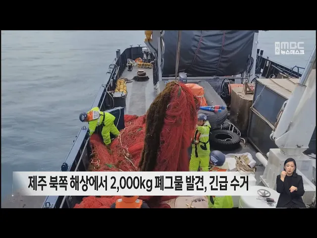 제주 해상에서 폐그물 뭉치 2천kg이 발견돼 해경이 수거했습니다. 제주해경은 오늘 오전 8시쯤 제주항 북서쪽 13km 해상에 폐그물 뭉치가 떠다닌다는 신고를 받고 출동해 현장에서 2천 kg의 폐그물을 수거했다고 밝혔습니다. 해경은 크레인을 이용해 수거한 그물을 제주항으로 옮겨 제주시에 인계했습니다.
