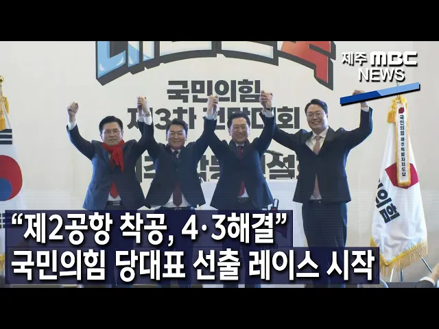 ◀ANC▶ 집권여당인 국민의힘이 새 당대표를 선출하기 위한 레이스가 제주에서 시작했습니다. 전국에서 처음 열린 합동연설회에서 후보마다 지역 표심 잡기에 나섰습니다. 권혁태 기자가 보도합니다. ◀END▶ ◀VCR▶ 다음달 8일 예정된 전당대회를 앞두고 첫 합동연설회에 나선 국민의힘 당대표 후보들. 제주지역 당원...