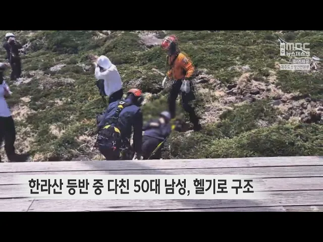 한라산 등반 중에 다친 50대가 헬기로 구조됐습니다. 오늘 오전 11시 50분쯤 한라산 백록담 부근 성판악 코스에서 50대 여성이 넘어지면서 움직이지 못한다며 구조를 요청했습니다. 신고를 받은 제주도 소방안전본부는 구조 헬기를 이용해 다친 여성을 병원으로 옮겼는데 생명에는 지장이 없는 것으로 알려졌습니다.