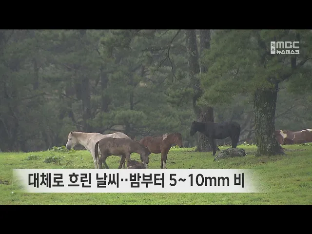 오늘 제주지방은 대체로 흐린 날씨를 보였습니다. 낮 최고기온은 제주 25.1도 고산 24.9도 성산 25.1 서귀포 26.1도 평년과 비슷하거나 조금 높았습니다. 밤부터는 남서쪽 지역부터 비가 내리겠습니다. 예산 강수량은 5에서 10mm로 내일 늦은 오후까지 이어지는 곳이 있겠습니다. 비는 다음주 화요일부터 다시 시작되...