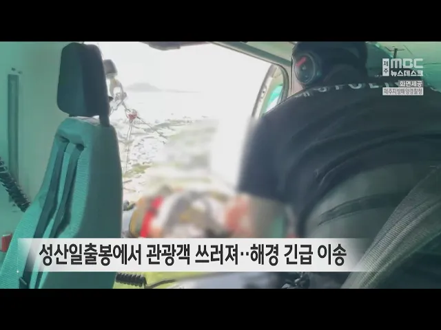 성산일출봉은 찾았던 60대 관광객이 뇌경색 증상을 보여 헬기로 긴급 이송됐습니다. 오늘 오후 1시쯤 성산 일출봉 정상 부근에서 60대로 추정되는 관광객이 두통과 함께 언어 장애 등이 발생해 구조를 요청했습니다. 신고 당시 정비 중이었던 소방 헬기 대신 해경 헬기가 출동해 환자를 병원으로 긴급 이송했고 환자는 ...