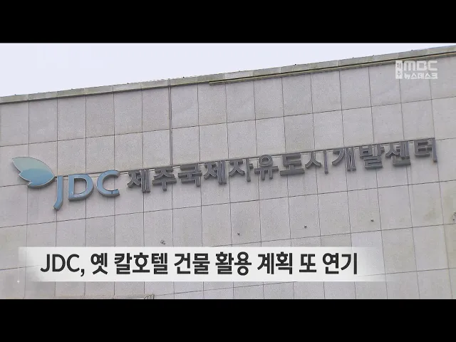 제주국제자유시개발센터가 추진 중인 글로벌교류 허브 사업의 결정이 또 연기됐습니다. JDC는 당초 지난달까지 내기로 했던 사전타당성 조사 용역 결론 도출을 지난 4월에 이어 또다시 미루기로 했습니다. 이 사업은 총 사업비 3천억 원을 들여 옛 칼호텔 부지로 JDC본사를 이전하고 국제업무시설과 문화시설, 복합상업...