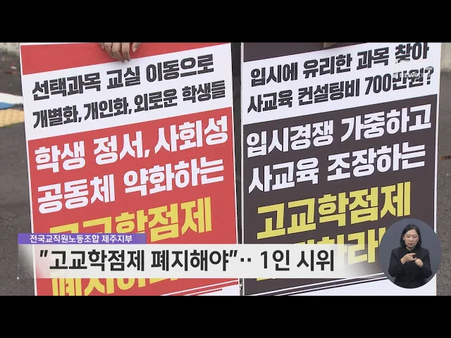 전교조 제주지부가 고교학점제 폐지를 요구하는 1인 시위를 제주도교육청 앞에서 시작했습니다. 이들은 고교학점제가 학생에게 조기 진로 선택을 강요하고 교사의 행정 업무 부담을 늘리는데다 교사와 실습 기자재가 부족해 일부 학교에서는 교사 없이 과목이 편성되면서 혼선을 빚고 있다고 주장했습니다. 특히, 입시 중심...
